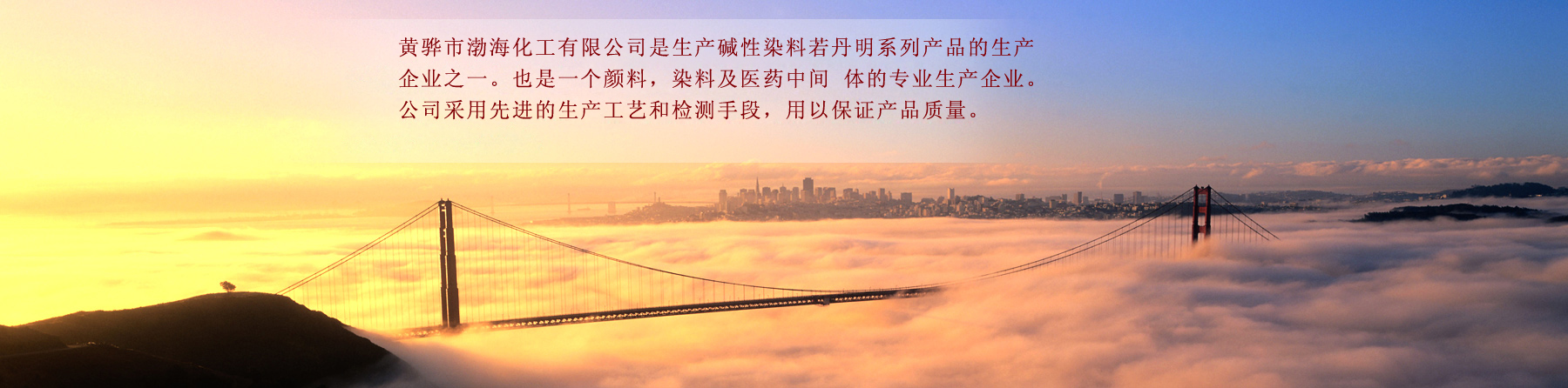 黃驊市渤海化工有限公司是生產堿性染料若丹明系列產品的生產企業之一。也是一個顏料,染料及醫藥中間體的專業生產企業。公司采用先進的生產工藝和檢測手段,用以保證產品質量。